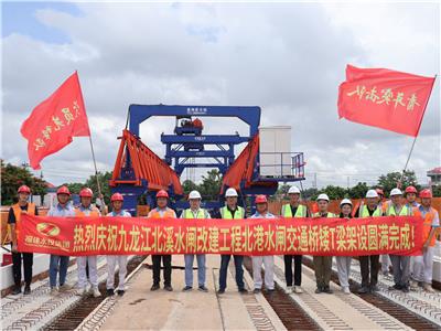 北溪水閘改建工程北港交通橋預制梁鋪設完成